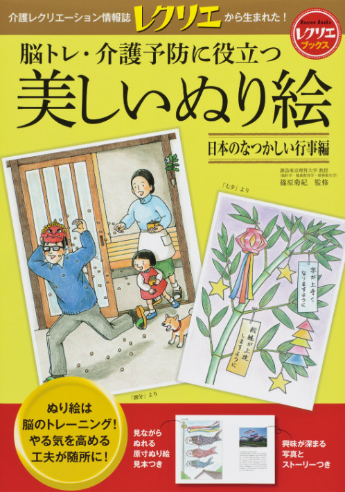 本書は、テーマを「日本のなつかしい行事」として、一年間を1月から12月まで、の順番に並べました。誰もが見たり感じたことのあるような日本の行事と、まつわる写真やエピソード、ぬり絵の彩色見本もついて、楽しみながらどんどんぬり進めるような工夫満載です。