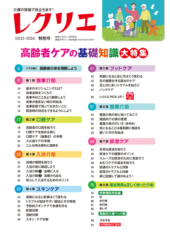 『レクリエ』本誌を購入された方への特典です。本誌掲載「パスワード」を下記の欄に入力し、「ダウンロード」ボタンをクリックしてください。本誌掲載の排泄チェック表の型紙などをダウンロードできます。詳しい使い方は本誌をご覧ください。