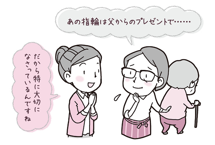 生活歴を知ることは、利用者を理解する手がかりとなります。なくなったと訴える物や、加害者と名指しされた人は、利用者のそれまでの人生においてどんな意味を持っていたのでしょうか。家族に話を聞くことで、本人の思いに気づくことがあります。